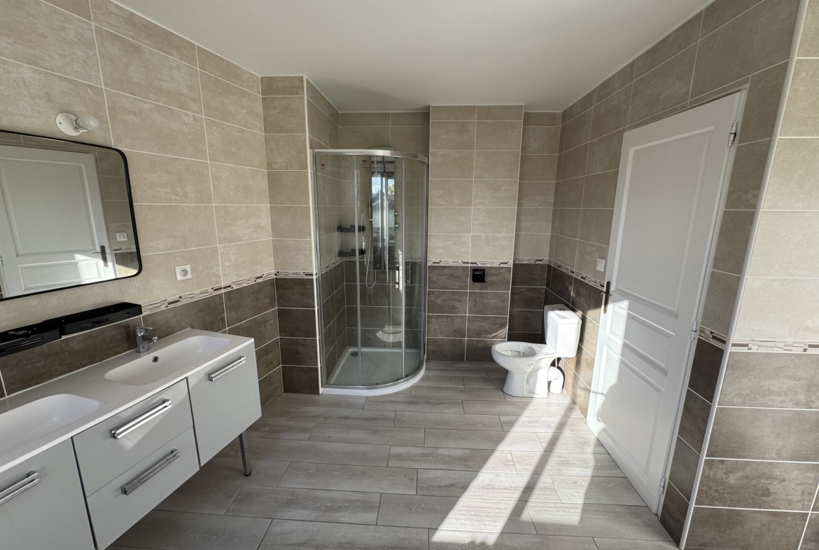 La maison est équipée de menuiseries en double vitrage PVC, de volets roulants électriques ainsi que d’un portail électrique.