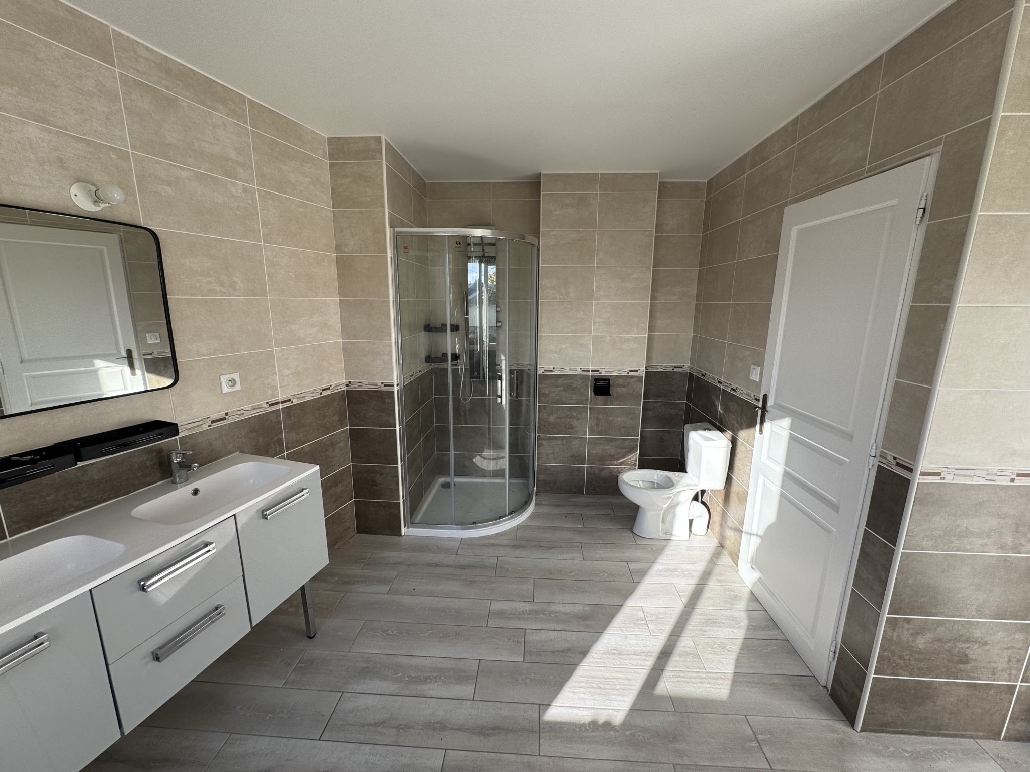 Le premier étage dessert une pièce palière, une salle de douche avec WC, un espace buanderie, ainsi qu’une chambre de plus de 15 m2 bénéficiant d’un dressing.