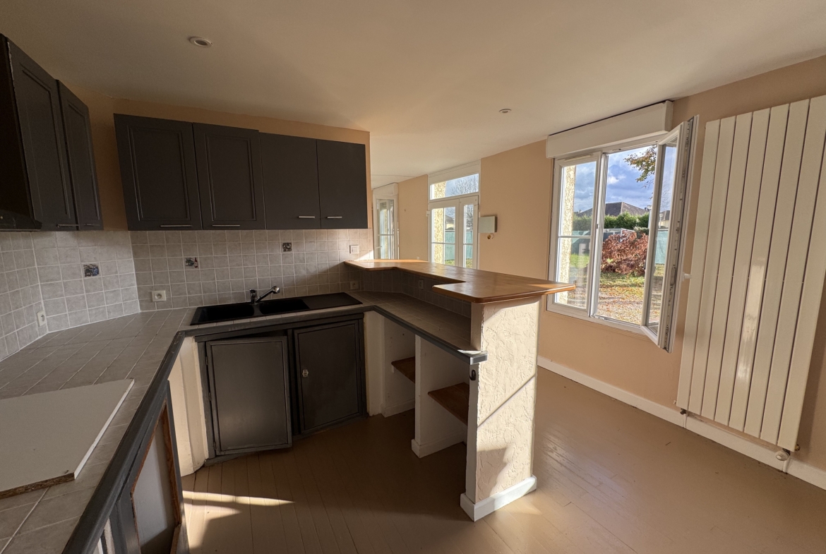 Au rez-de-chaussée, la maison se compose d’une cuisine, d’un WC indépendant, ainsi que d’un séjour lumineux de 35 m2.