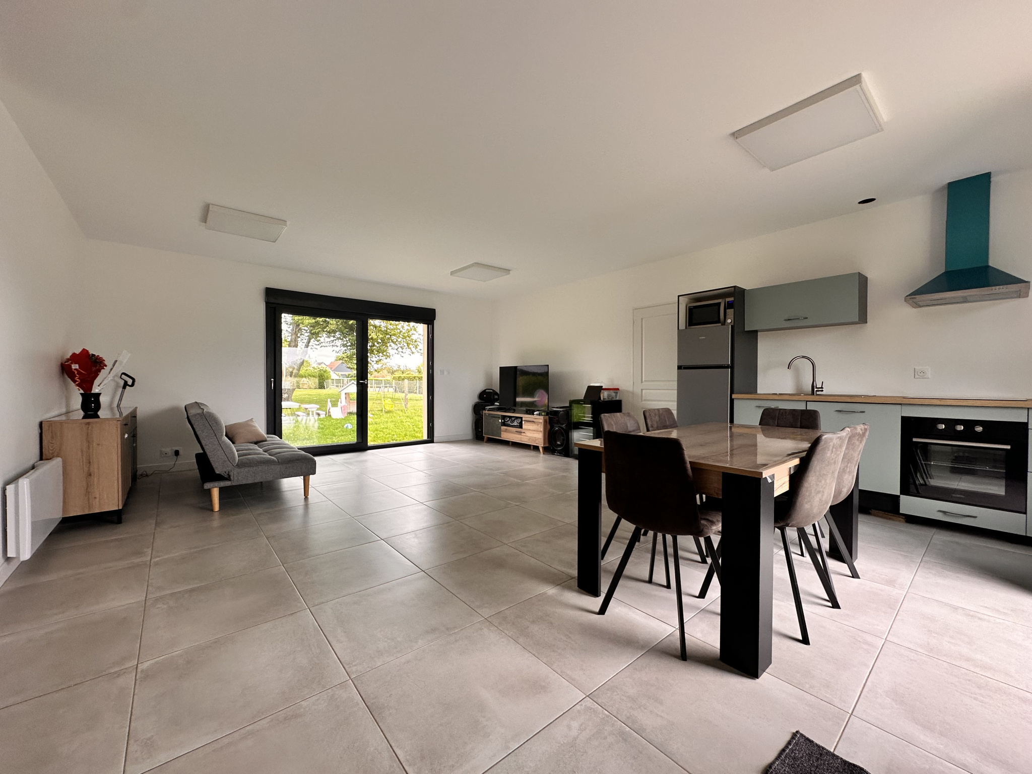 Cette maison se compose d’un espace de vie lumineux de 46 m2 regroupant salon, séjour et cuisine ouverte, 3 chambres confortables, une salle de bains avec baignoire et douche à l’italienne, WC séparés. Un garage attenant de 20 m2, idéal pour rangement ou stationnement. Un bien fonctionnel et chaleureux, à ne pas manquer ! Jardin clos, facile d’entretien de 746m2.
