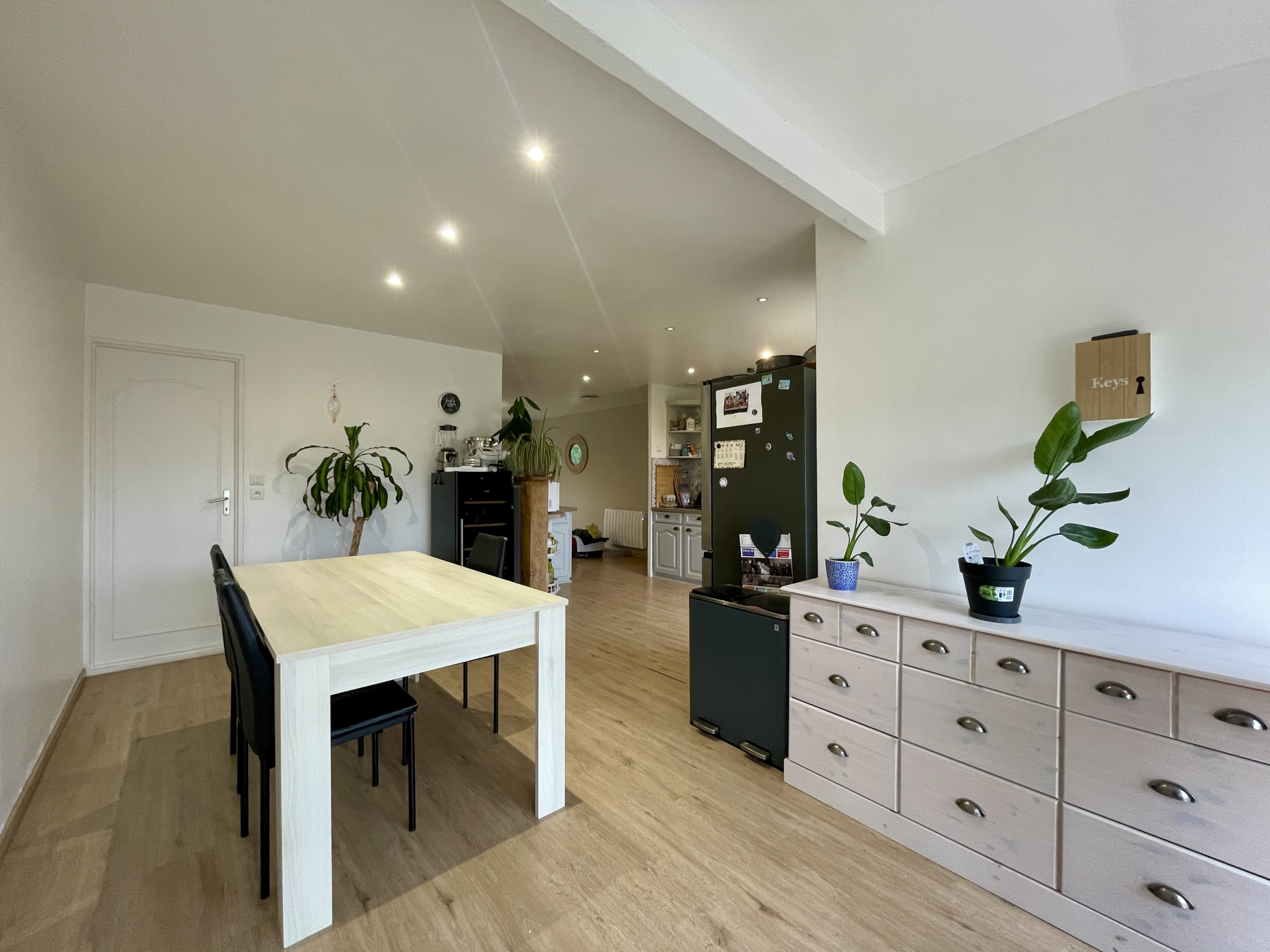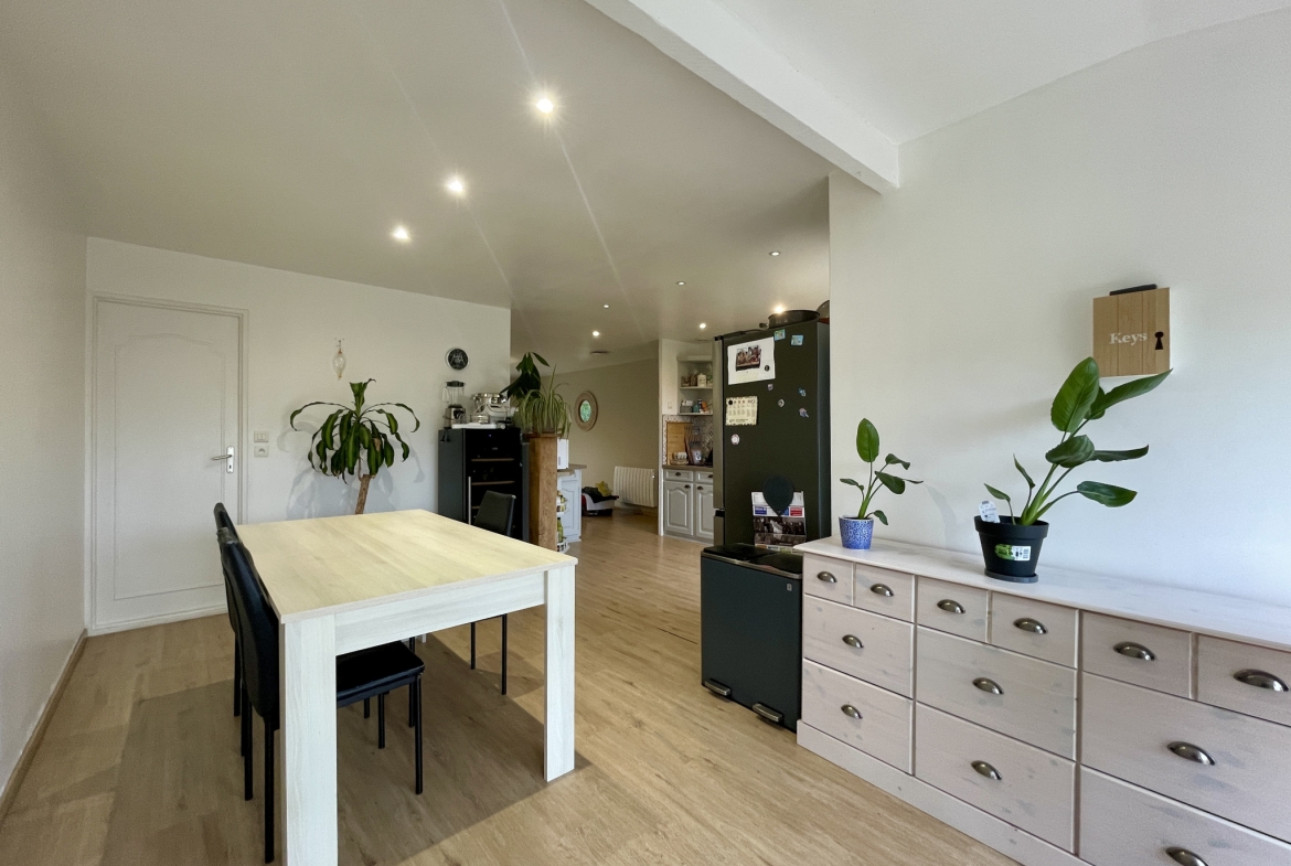 Cette maison se compose d’une belle entrée avec placards desservant un grand séjour salon / salle à manger de 37m2 avec cheminée insert, une cuisine ouverte tout aménagée et semi équipée, 2 belles chambres, une salle de bains et un WC indépendant.