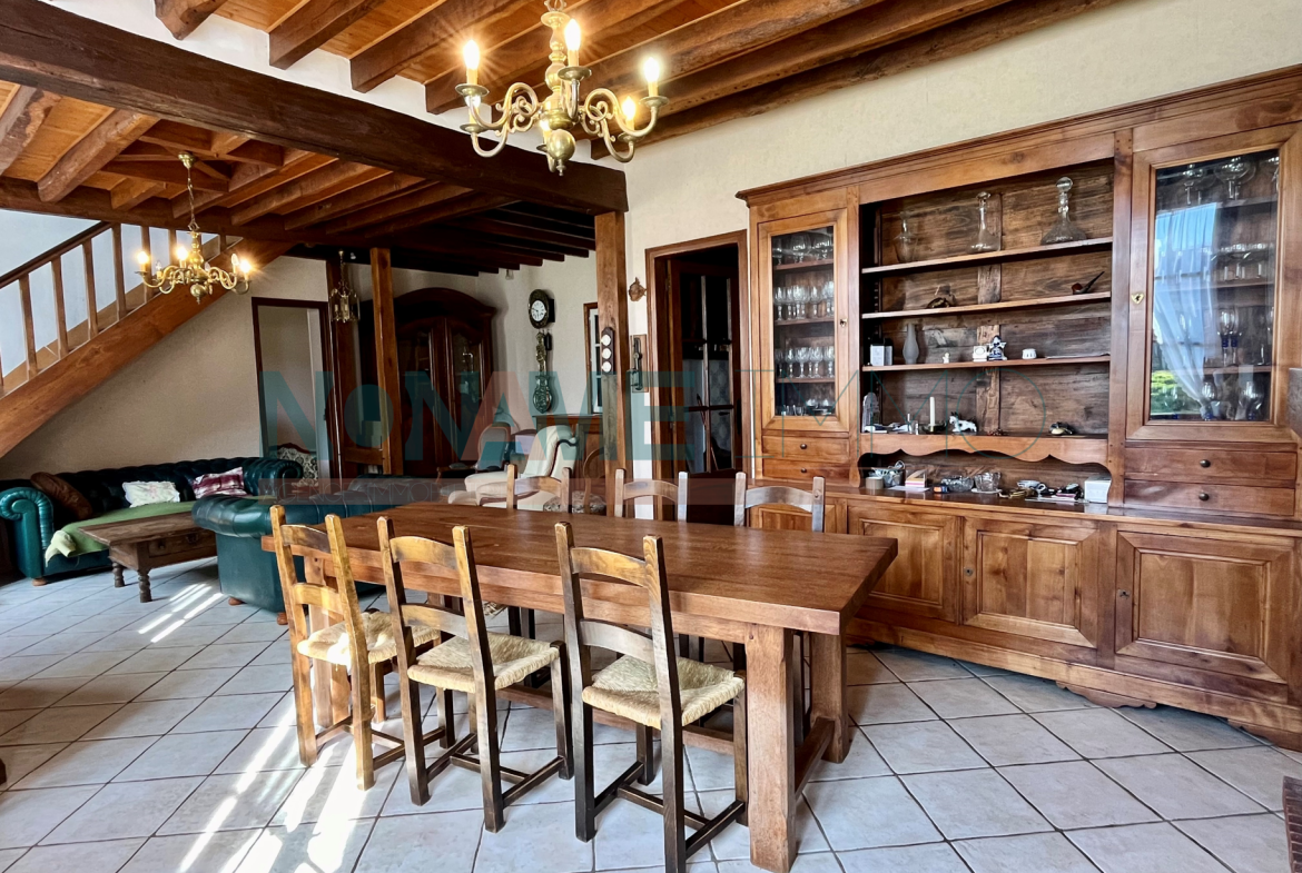 Situé dans un petit village entre St André et Pacy sur Eure dans une petite rue au calme maison ancienne de 1880, d’environ 170m2 sur terrain clos et arboré de 1750 m2. Elle se compose comme suit : entrée, salon avec cheminée, salle à manger, cuisine A&E, Salle de bains avec wc séparé et chambre. A l’étage, palier desservant une salle de bains avec WC, 3 chambres. Adorable jardin à l’abri des regards très bien entretenu. Une grange, une cave et un garage complète ce bien ainsi qu’une charetterie avec dalle béton et barbecue.