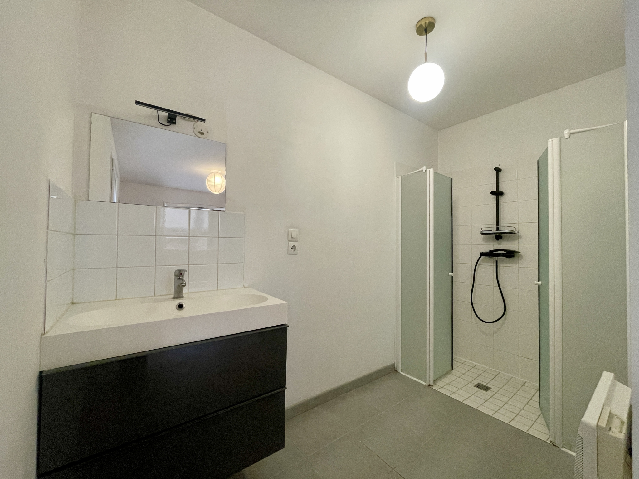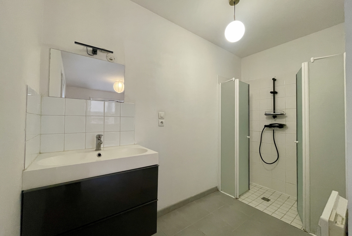 Cette maison se compose au rez-de-chaussée d’une belle entrée avec cuisine ouverte, un séjour lumineux, une belle chambre donnant accès sur le jardin avec salle de douches et un WC indépendant.