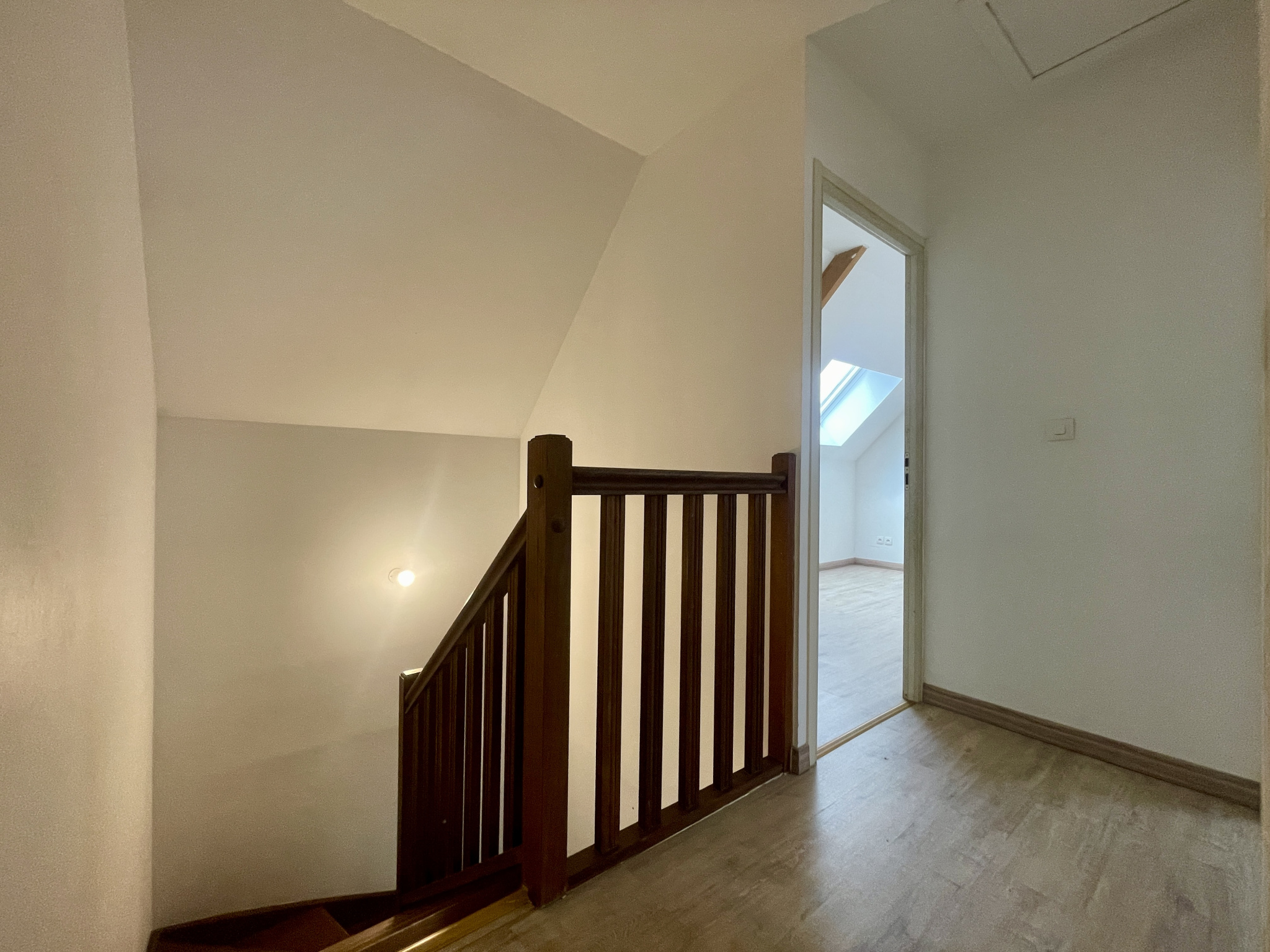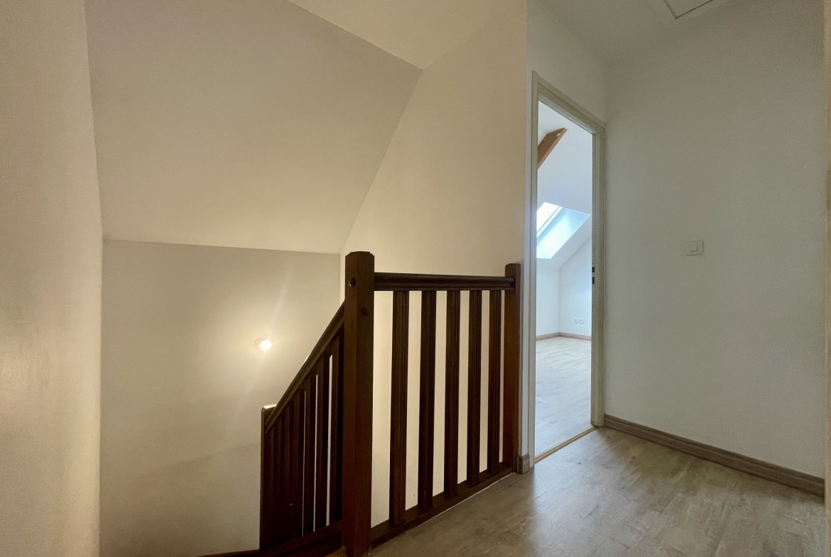 À l’étage, vous y trouverez un palier desservant 3 grandes chambres et une salle de bains avec WC.