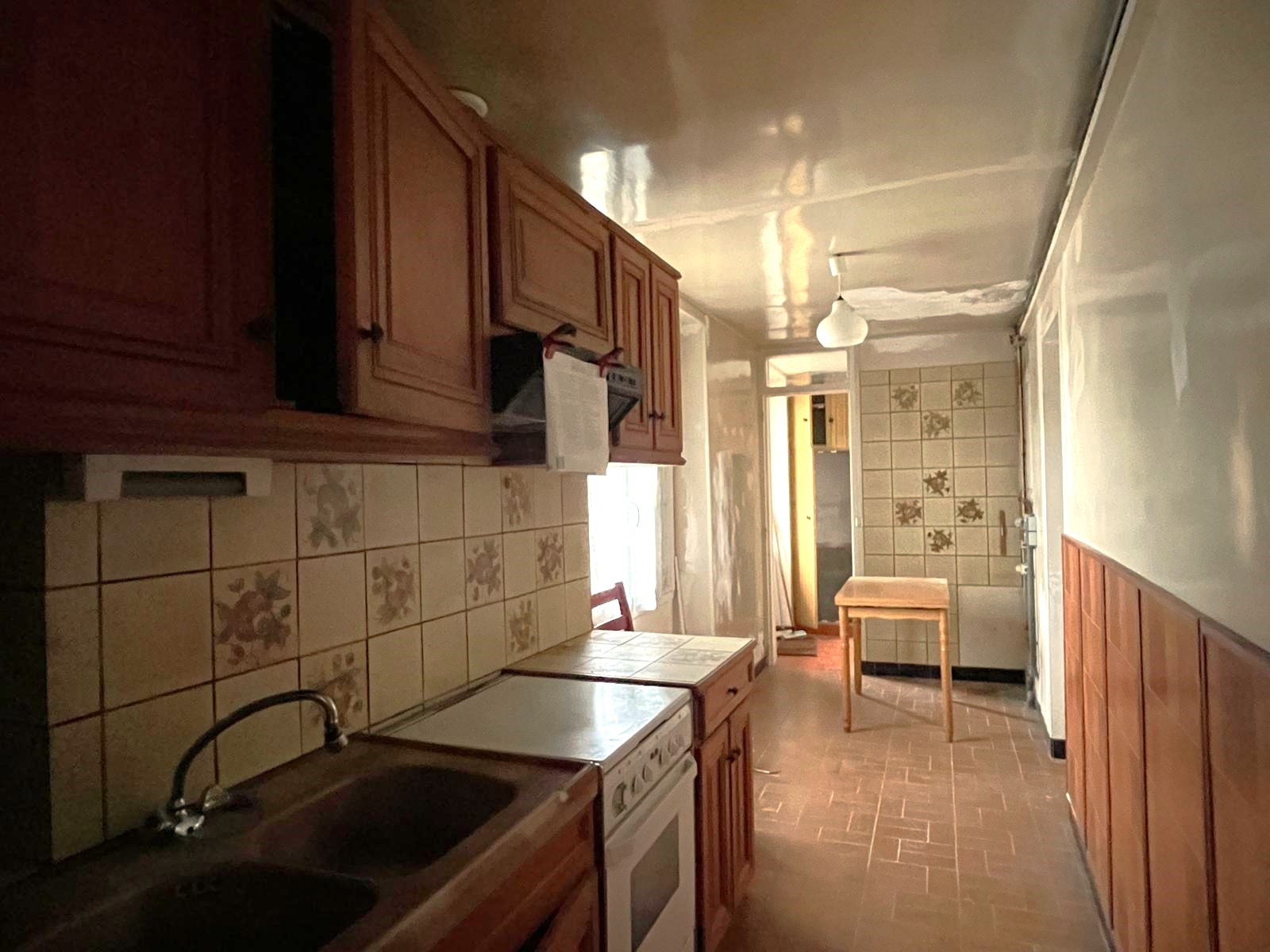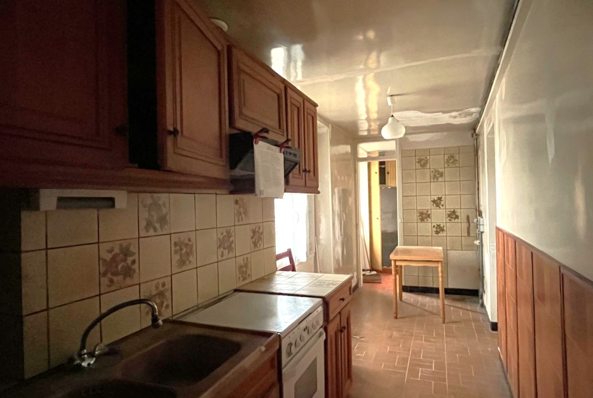 Elle se compose d’une maison mitoyenne de 65m2 à rénover exposée plein sud comprenant, une entrée, un séjour avec cheminée avec son joli carrelage d’origine, une cuisine séparée, deux chambres, une salle d’eau, un WC séparé, une véranda plein SUD et un grenier sous combles.