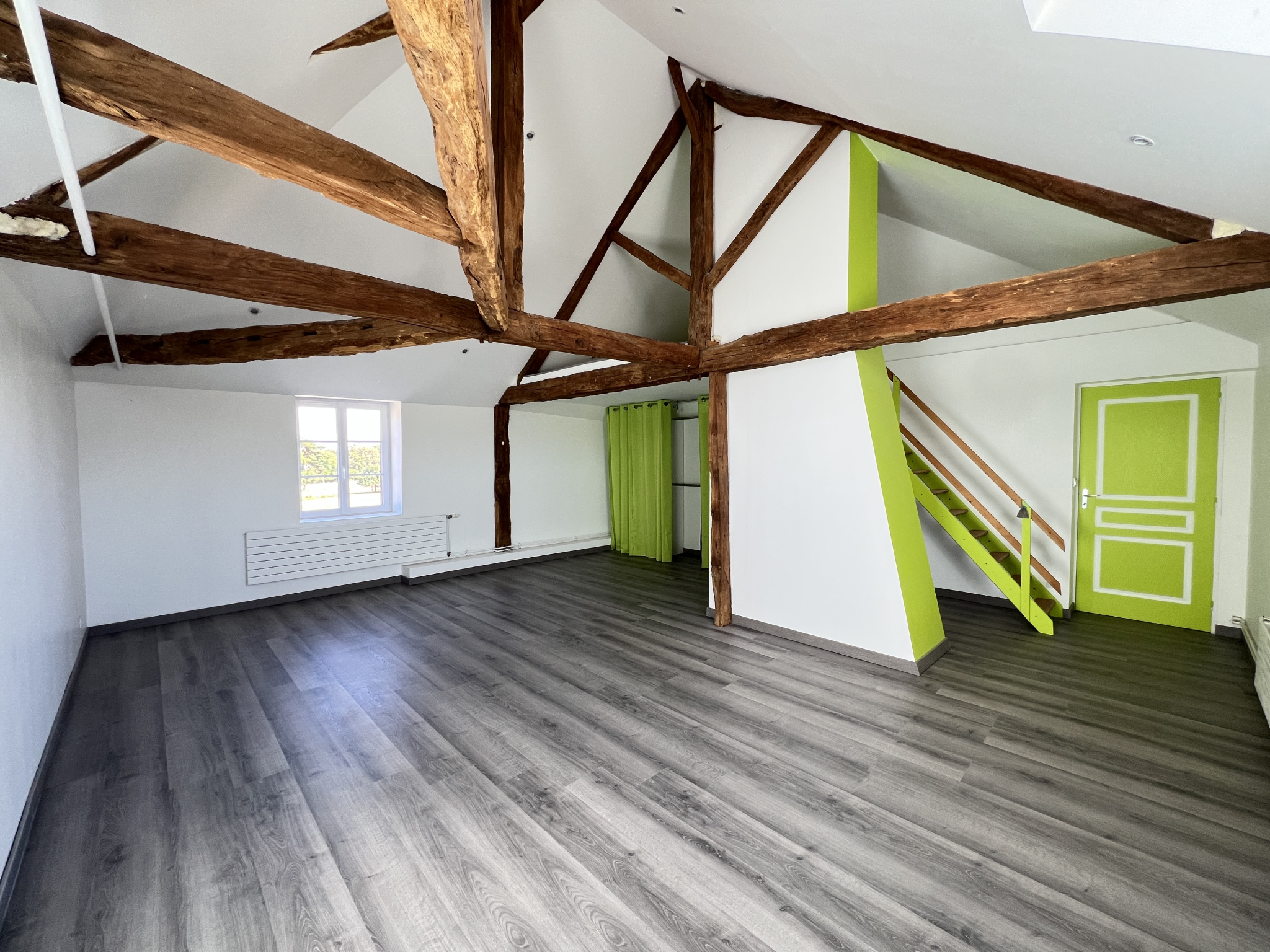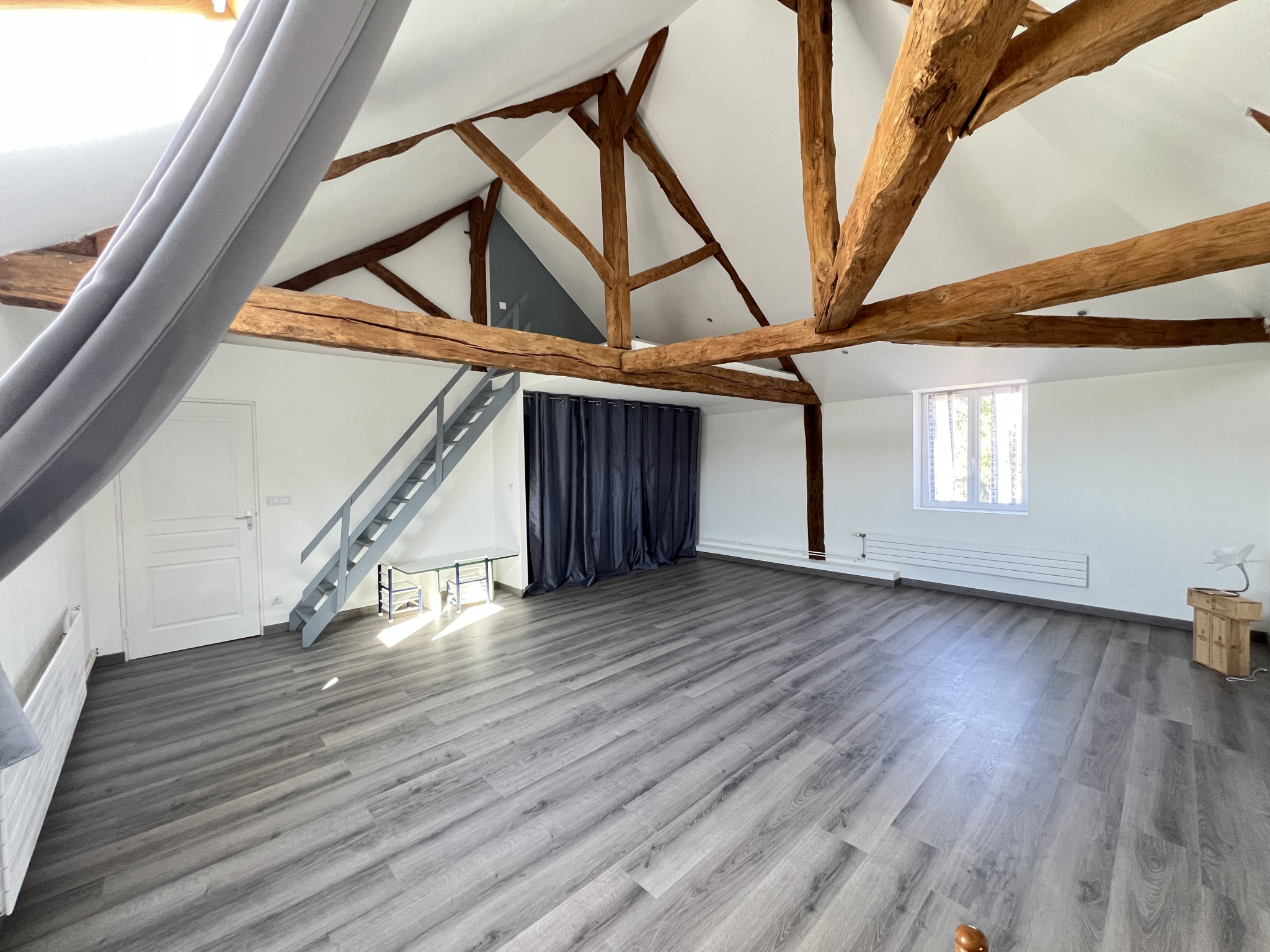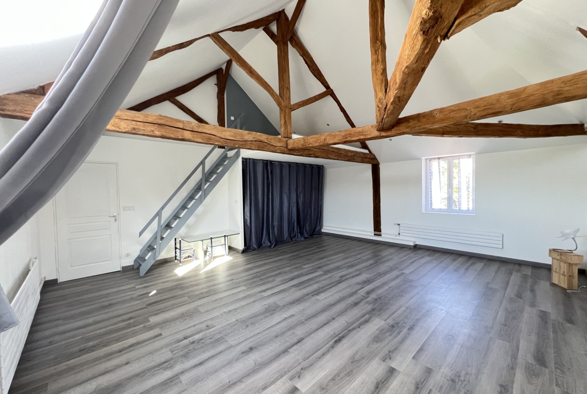 À l’étage, un grand palier de 37m2 menant à deux superbes chambres de 40 m2 chacune dont une avec WC indépendant, bénéficiant d’une belle hauteur sous plafond, d’un beau volume et de beaucoup de luminosité. Cet étage dispose également d’une salle d’eau.