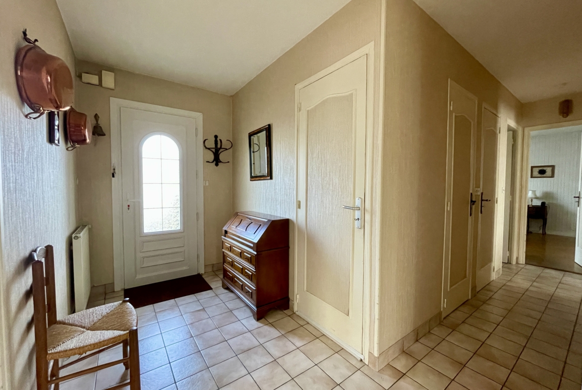 Cette propriété se compose d’une belle entrée lumineuse desservant un grand séjour salon / salle à manger de 38m2 avec cheminée à foyer ouvert, une cuisine séparée, une suite parentale avec salle de bains, WC indépendant, une pièce d’eau et un espace bureau.