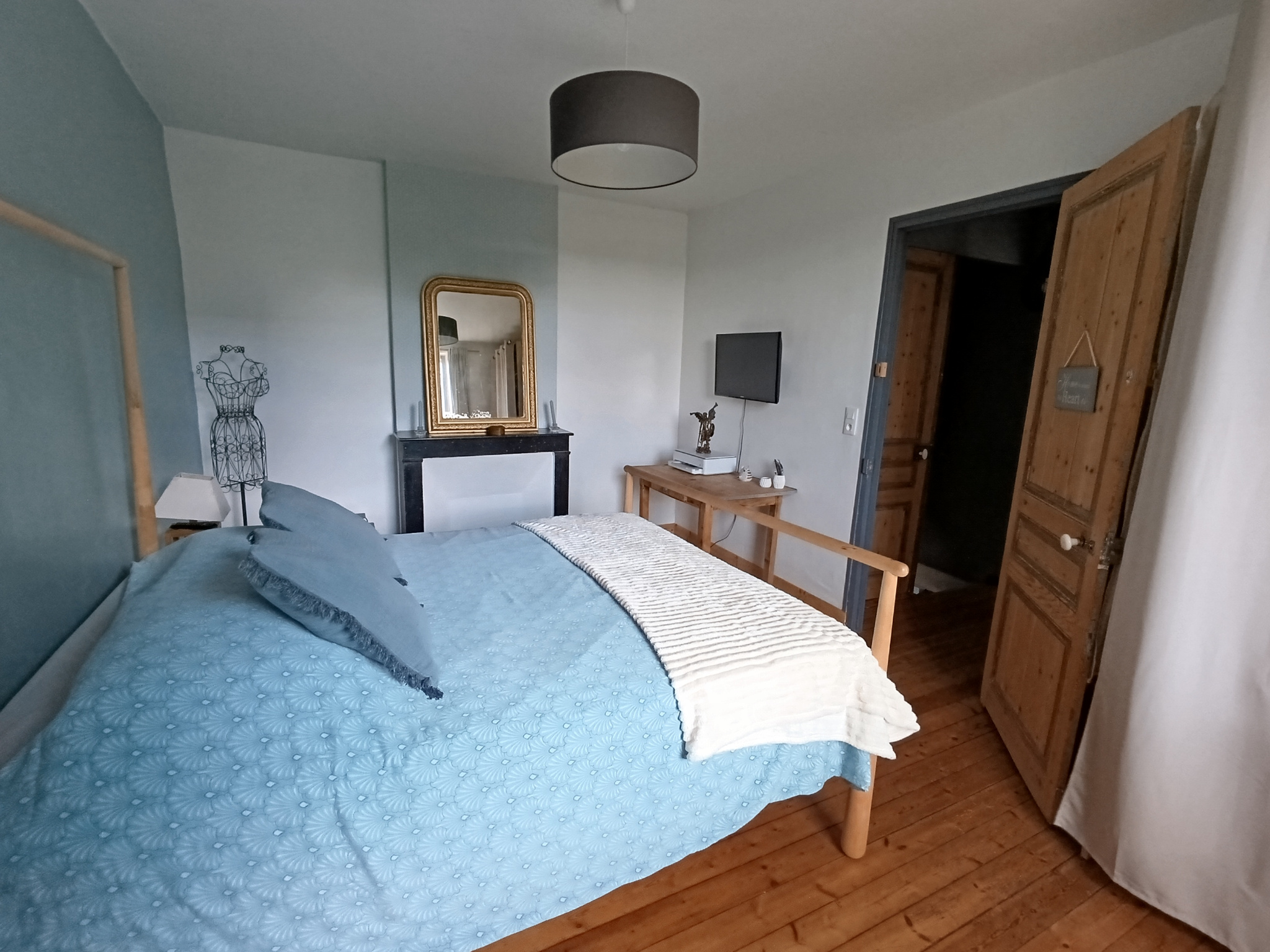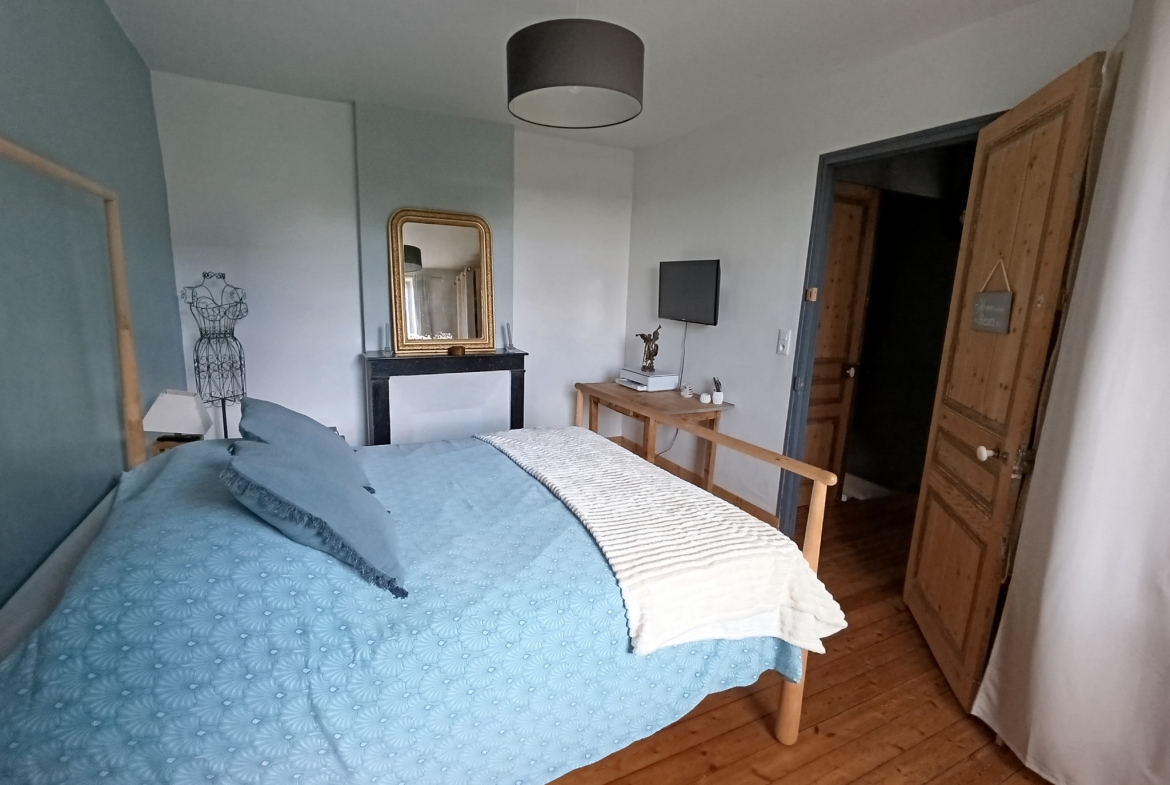 Les combles ont été aménagés afin d’accueillir une spacieuse chambre sous toiture, pleine de caractère et de charme.