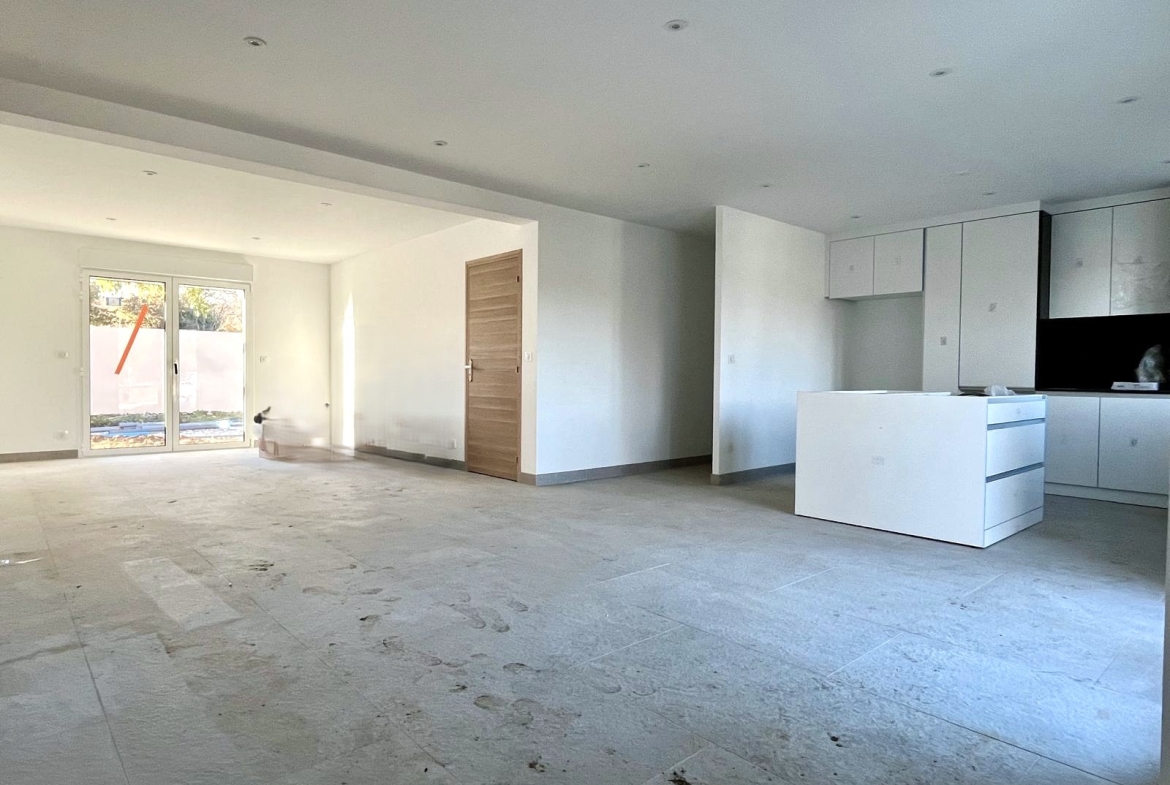 D’une surface d’environ 100 m2, elle offre une belle pièce de vie lumineuse avec une cuisine aménagée et semi-équipée ouverte sur le séjour salon.