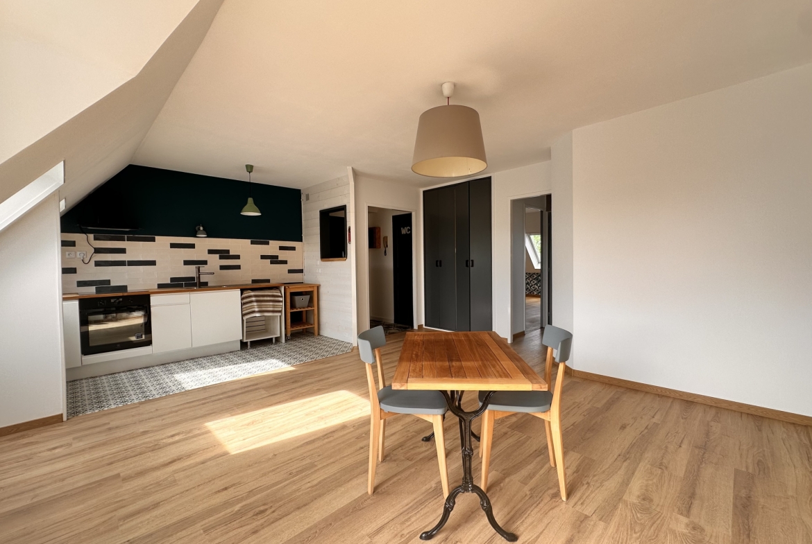 Il se compose d’une piéce de vie lumineuse avec cuisine ouverte aménagée et équipée, deux chambres, une salle de bains et WC indépendants.